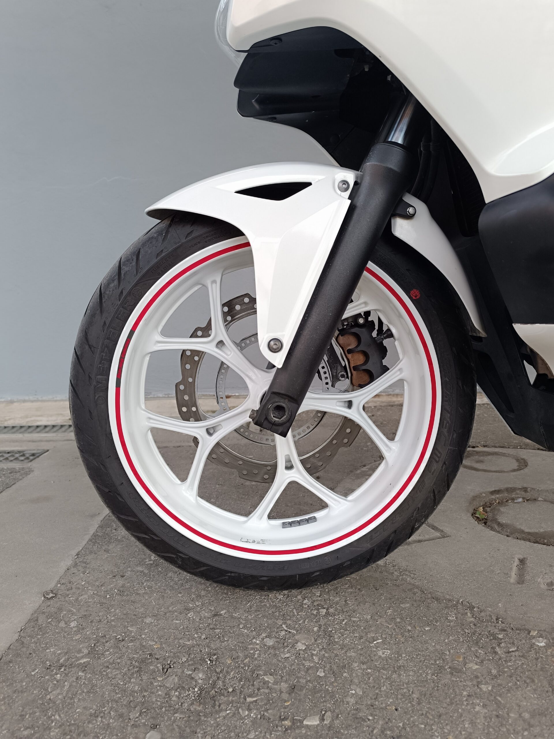 Moto molto comoda con sella e posizione rilassata da maxi scooter e motore bicilindrico con trasmissione automatica a 6 marce, provvista di terminale akrapovic e vari optional come la piastra di montaggio per un navigatore, la piastra posteriore per il bauletto e la verniciatura professionale dei cerchi.